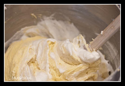 - Fold 1/3 of egg whites into cake batter to lighten batter